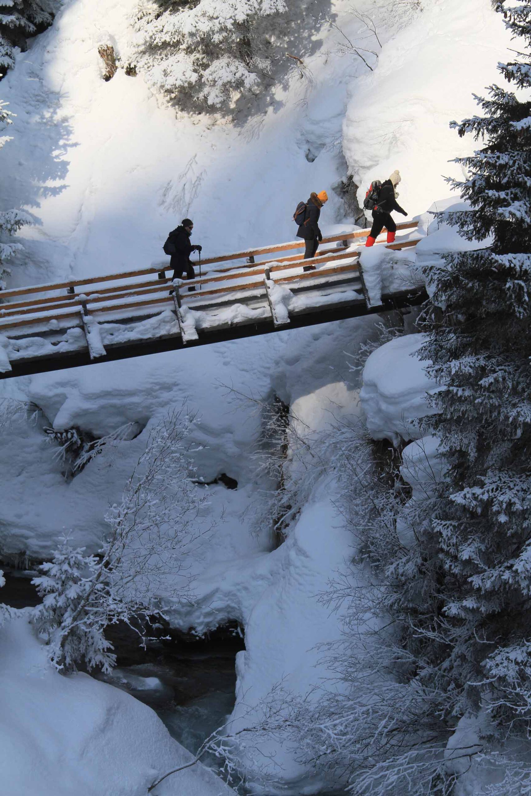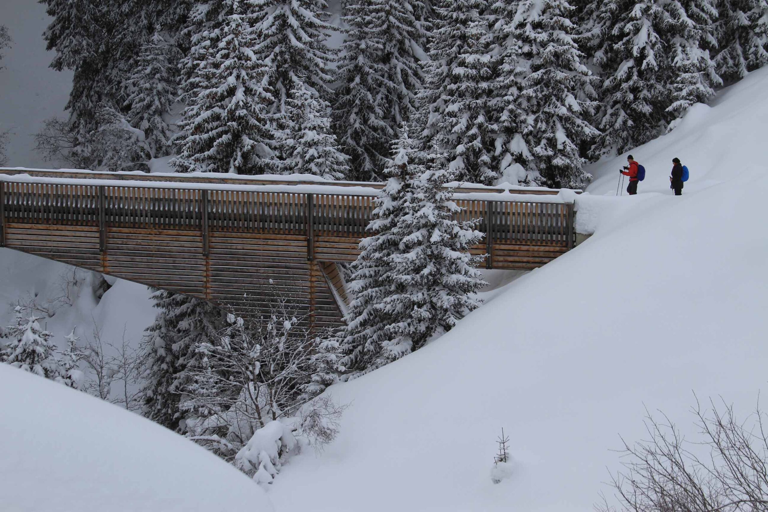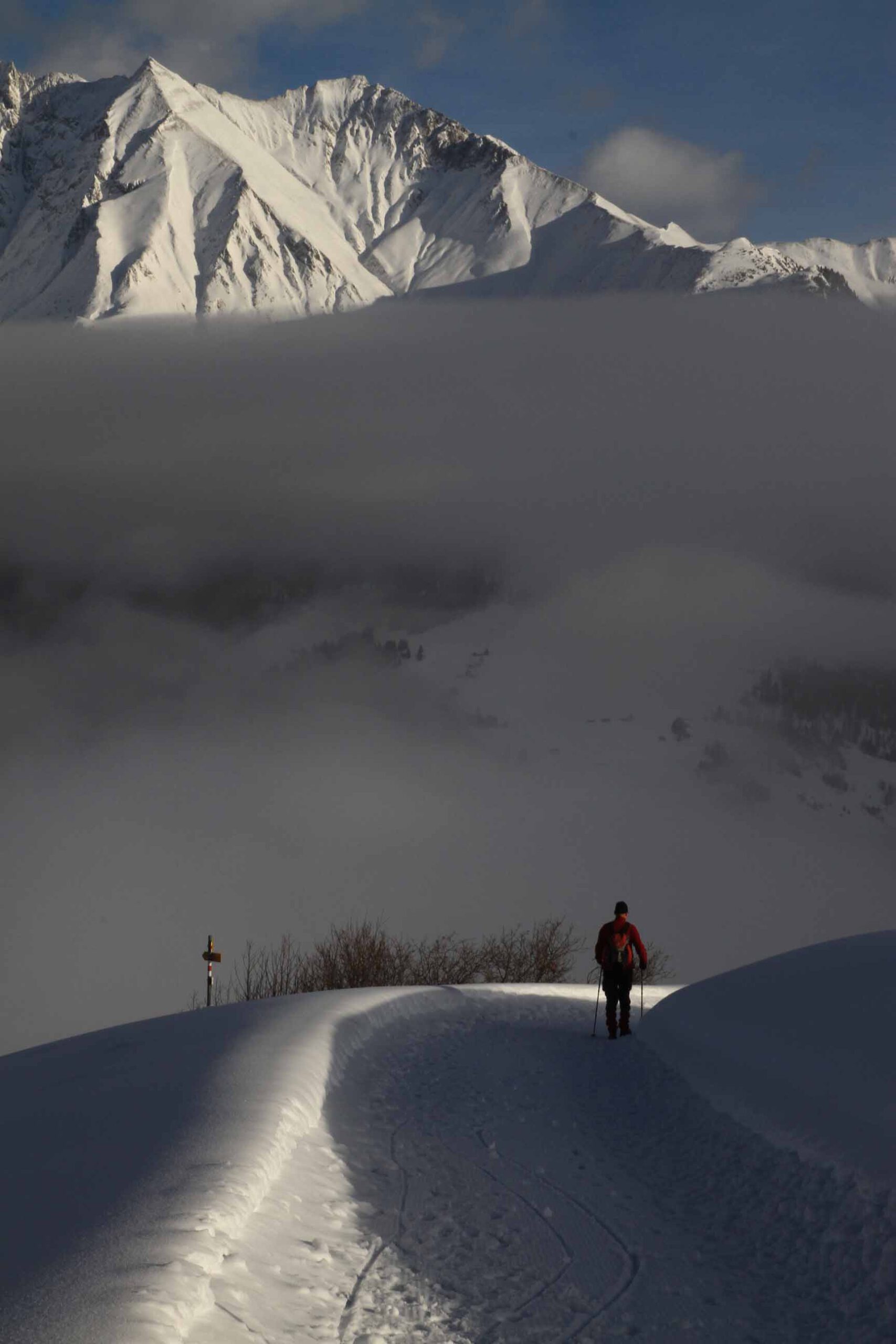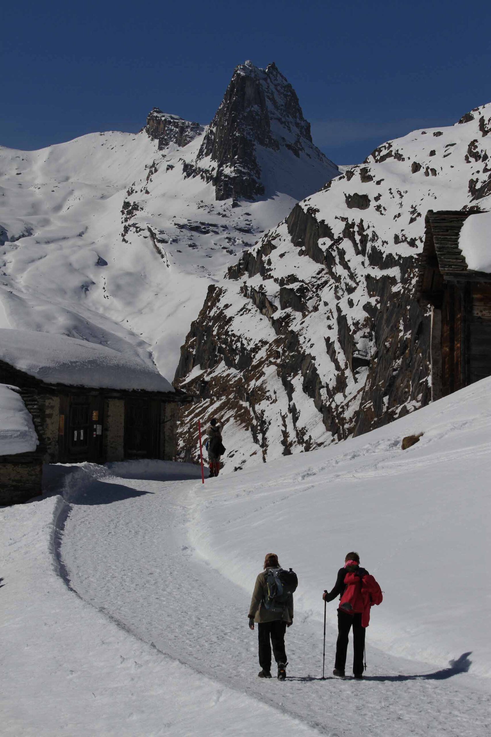 12 bis 18 km, tägliche Anstiege nicht über 300 Höhenmeter. Aber Achtung: Auch wenn die Wege bestens gespurt sind, kann das Wandern im Winter schon mal anstrengend werden – vor allem bei starker Sonneneinstrahlung, die die Oberflächen antauen lässt. Mit Spaziergängen haben die Etappen jedenfalls nichts zu tun! Die reinen Laufzeiten betragen 4 bis 6 Stunden. Man braucht eine gute Grundkondition und sollte nicht das allererste Mal im Gebirge wandern.