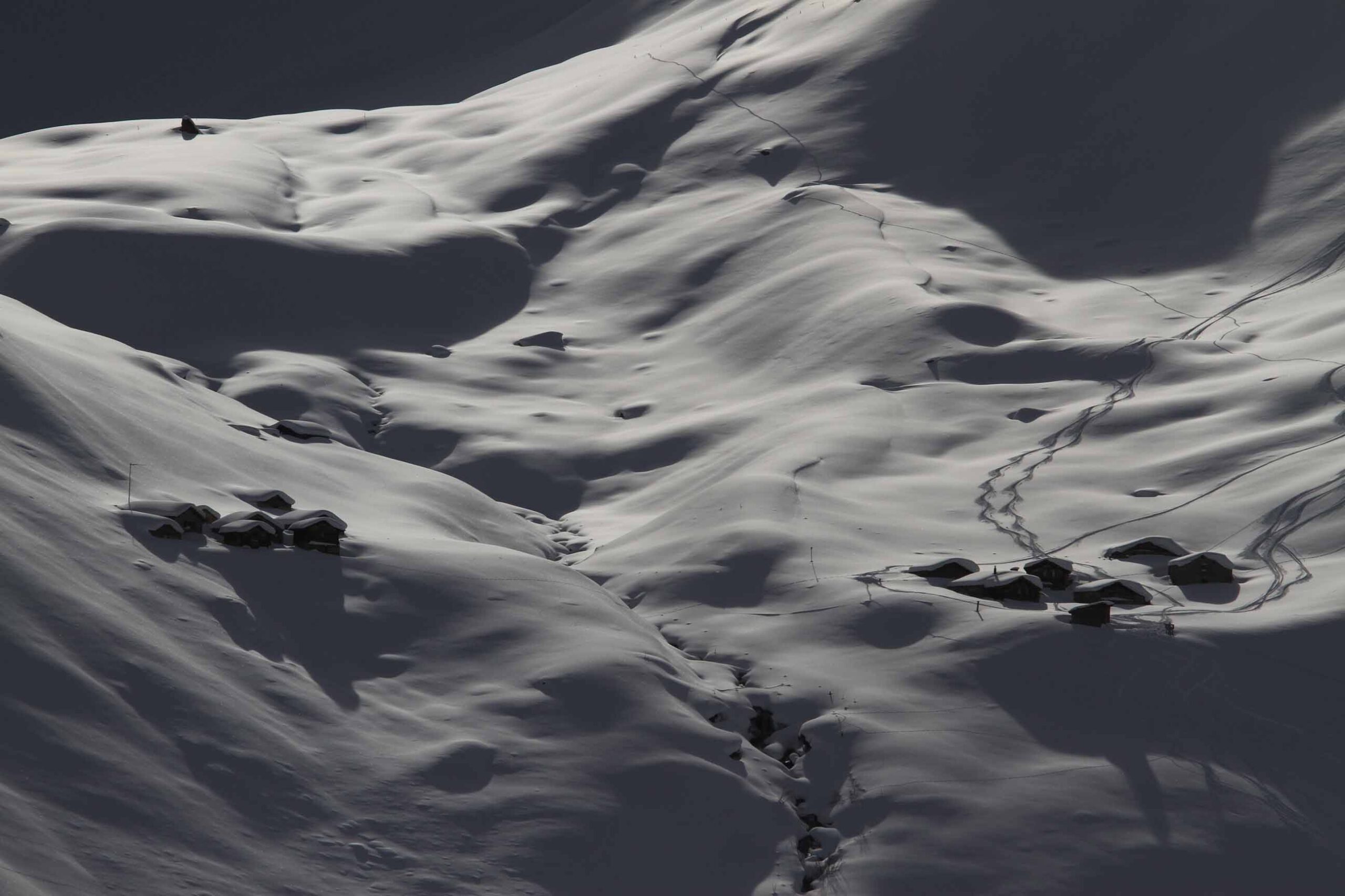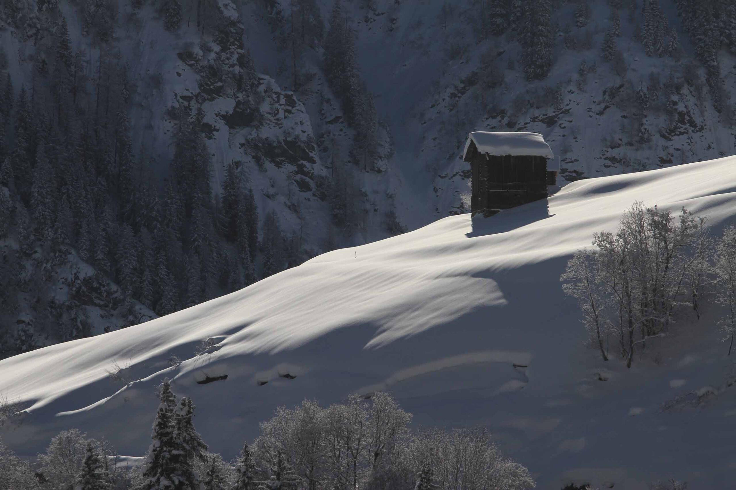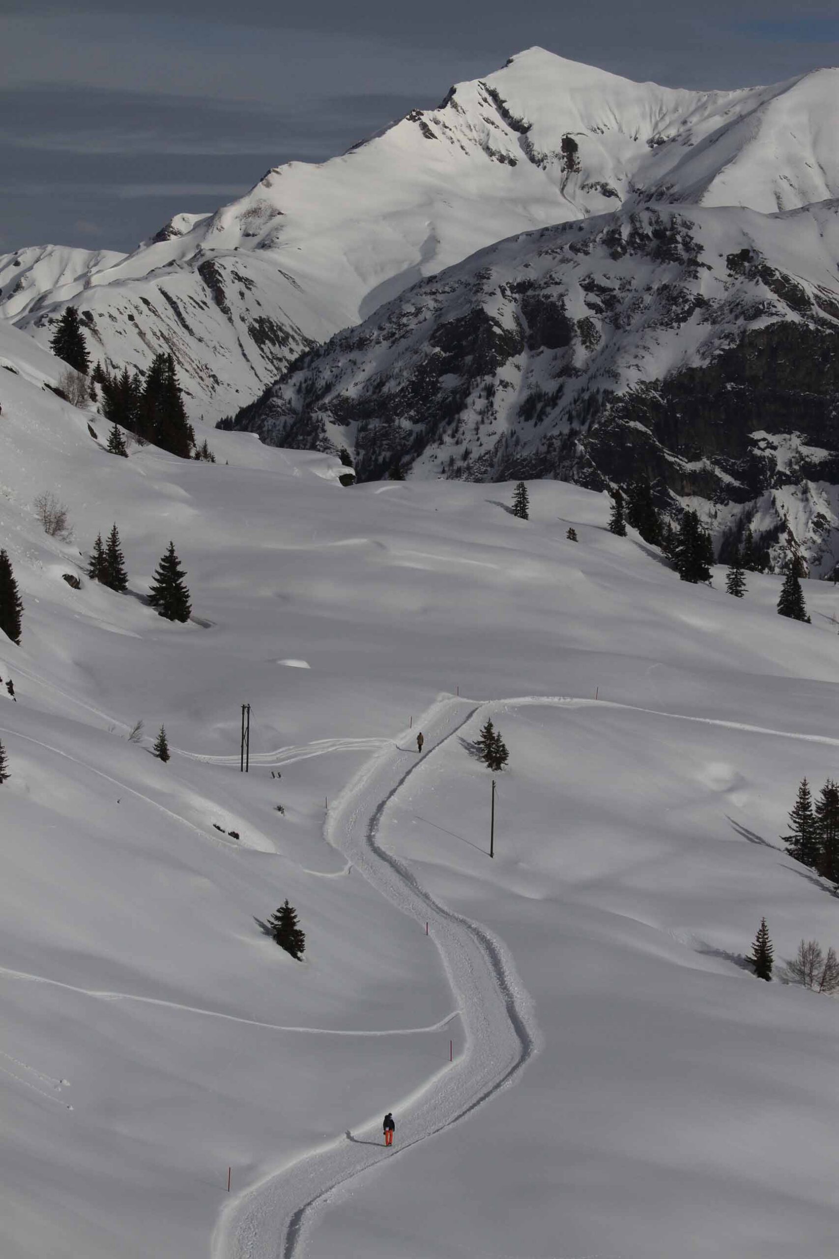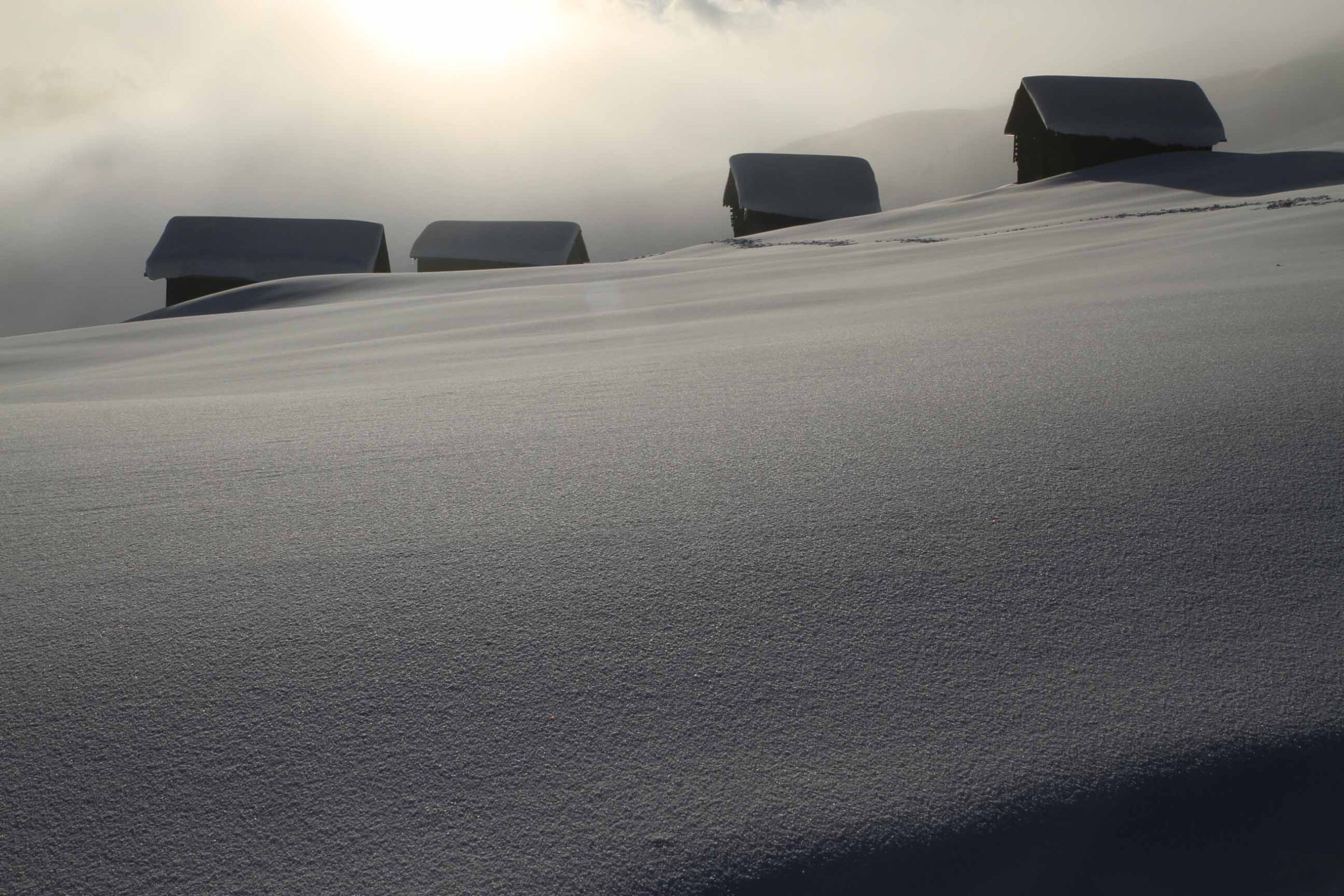 Das Besondere der Tour liegt darin, dass wir kein feststehendes Quartier haben, sondern von Ort zu Ort gehen, uns also wirklich auf den Weg machen – einen Weg, der uns mit der ganzen Region am Vorderrhein bekannt macht, statt nur mit einzelnen Ausschnitten davon. Wir sind also ganz wie im Sommer unterwegs, aber mit dem entscheidenden Unterschied, dass der Schnee unter unseren Sohlen knirscht und die in Weiß erstrahlende Alpenlandschaft geradezu verzaubert wirkt.